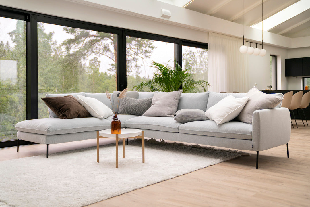 ISKU Curve -avokulmasohva yhdistää pehmeät, kaarevat linjat ja ajattoman muotoilun. Syvä istuin ja ryhdikäs, hyvin muotonsa säilyttävä vaahtomuovitäyte tarjoavat mukavuutta sekä yksin rentoutuessa että yhdessä läheisten kanssa. Sohvan korkea maavara tuo ilmeeseen keveyttä ja helpottaa arkea siivouksen sujuessa vaivatta.